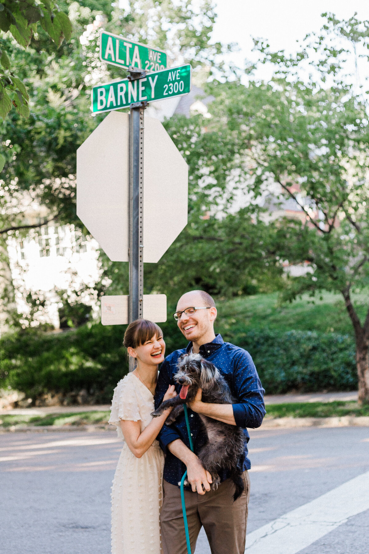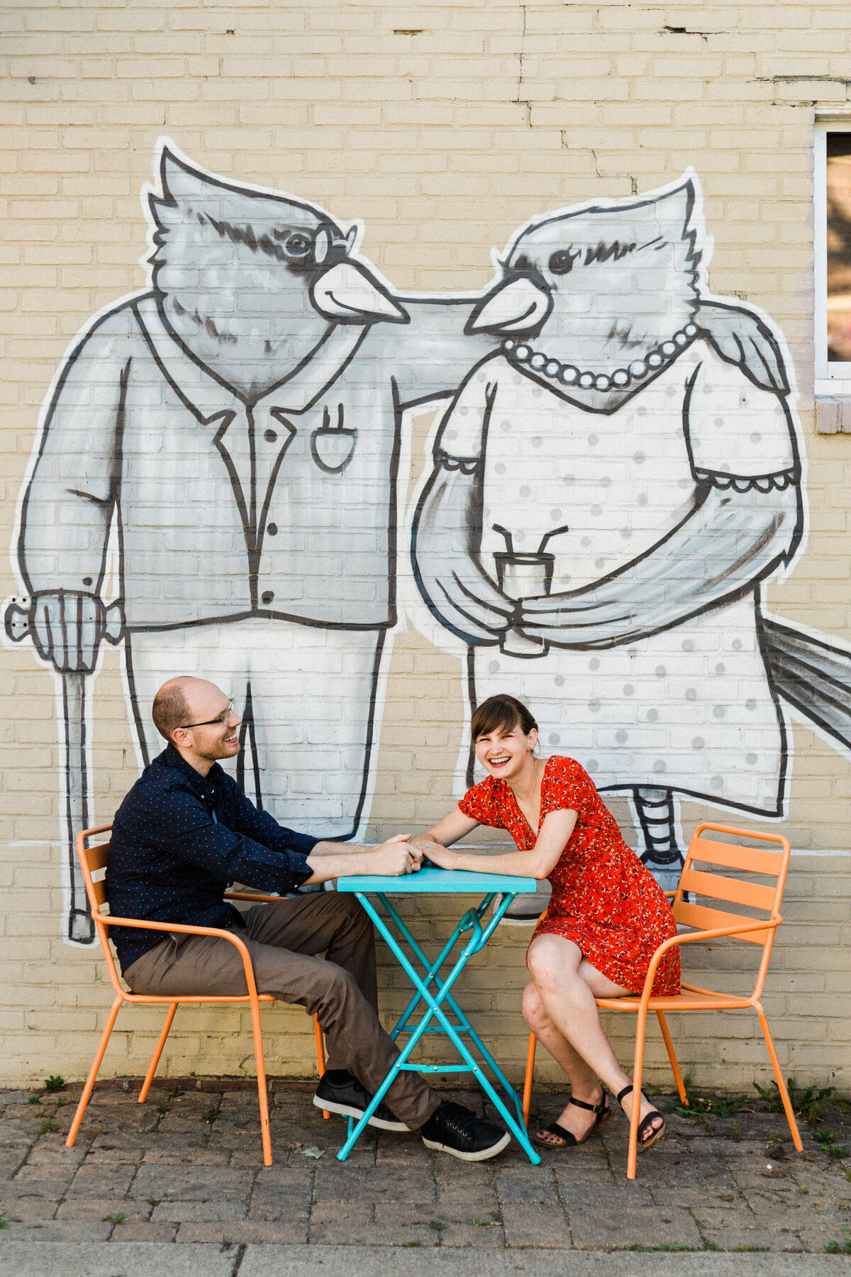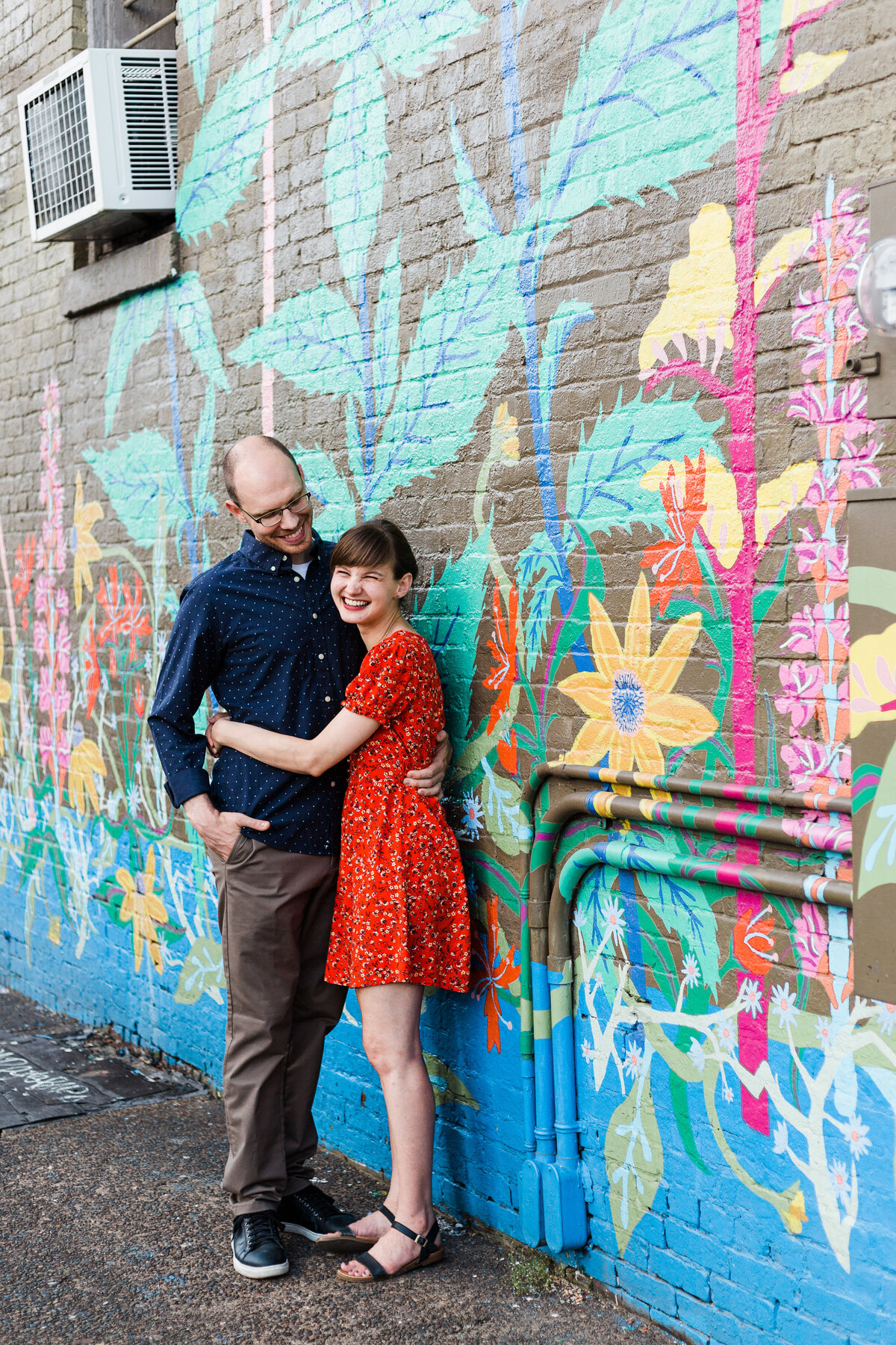 Last summer, she reached out to tell me that she and her husband, Ben, were moving away from Louisville. I was crushed at the thought of her moving but honored when she asked if I would take photos of them at some of their favorite locations around town. This included the street corner where they got engaged, Cherokee Park, Safai Coffee Shop, and a fun mural on Market Street. Virginia is lucky to have them.